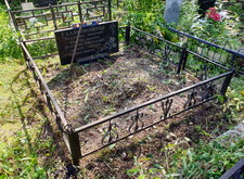 В ходе работы над данным заказом нам предстояло: переустановить покосившийся широкий памятник из чёрного гранита; покрасить обветшавшее от времени ограждение; обновить надписи на надгробье; установить прямоугольный цветник, а также выложить землю на участке гранитной брусчаткой. Приехав на место захоронения мы застали могилу в заброшенном состоянии: на всей её территории росла сорная трава, практически полностью скрывавшая памятник.